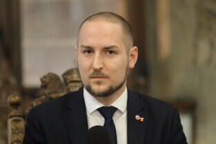 Gdańsk. Uroczyste otwarcie turnieju Eliminacji Mistrzostw Świata w Unihokeju Kobiet. Nz. Wiceprezydent Gdańska Piotr Borawski.