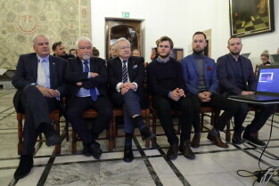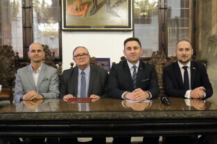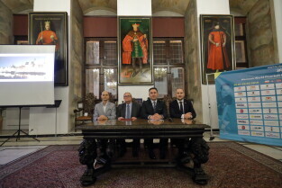 Gdańsk. Uroczyste otwarcie turnieju Eliminacji Mistrzostw Świata w Unihokeju Kobiet. Nz. Terg Kalsta-Przedstawiciel Międzynarodowej Federacji Unihokeja, Józef Sarnowski-Wicemarszałek Województwa Pomorskiego, Wiceprezydent Gdańska Piotr Borawski i Marek Chomnicki-Prezes PZUnihokeja.