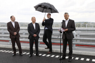 Odbiór decyzji o pozwoleniu na użytkowanie Obwodnicy Południowej Gdańska, która łączy drogę S7 w stronę Warszawy z Obwodnicą Trójmiasta. Nz. od prawej: Pomorski Wojewódzki Inspektor Nadzoru Budowlanego Grzegorz Stosik, Prezydent Gdańska Paweł Adamowicz, Dyrektor O/Gdańsk GDDKiA Robert Marszałek