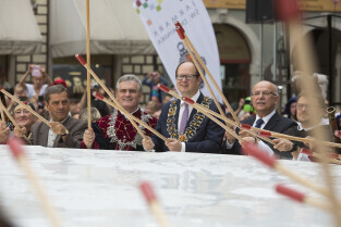 Otwarcie 754. Jarmarku Św. Dominika. Gdańsk, Długi Targ. Nz. od lewej: Przewodniczący Rady Miasta Gdańska Bogdan Oleszek, Prezydent Gdańska Paweł Adamowicz i Prezes Międzynarodowych Targów Gdańskich Andrzej Kasprzak