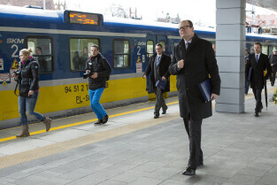 Otwarcie nowego przystanku Szybkiej Kolei Miejskiej "Gdańsk Śródmieście". Nz. Prezydent Gdańska Paweł Adamowicz