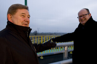 Frma BPTO – inwestor ulicy Nowej Wałowej, przekazał drogę Miastu Gdańsk, co umożliwiło otwarcie jej dla ruchu. Nz. od lewej: Kaj Andreasen (BPTO), Prezydent Gdańska Paweł Adamowicz, Mogens Jorgensen (BPTO)