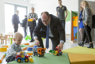 Otwarcie nowego żłobka "Skarbek" przy Kolorowej w Gdańsku. Nz. Prezydent Gdańska Paweł Adamowicz