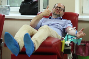 Gdańsk Centrum Krwiodawstwa. Prezydent Gdańska Paweł Adamowicz oddaje krew