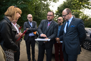 Gdańsk. W związku z przygotowaniami do spotkania Prezydenta Miasta Gdańska z mieszkańcami dzielnicy Aniołki, odbył się obchód po dzielnicy, w którym uczestniczyli urzędnicy i radni dzielnicy