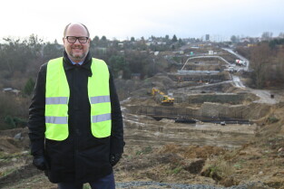 Gdańsk. Spacer po budowie linii tramwajowej Nowej Bulońskiej Północnej. Nz. Prezydent Gdańska Paweł Adamowicz.