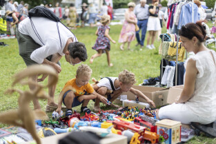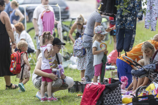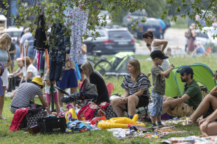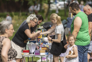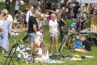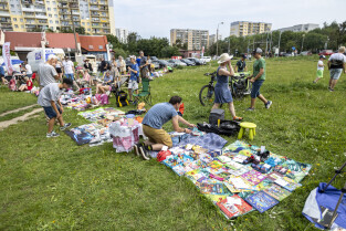 Gdańsk. Pchli targ zorganizowany dla mieszkańców przez Radę Dzielnicy PIecki-Migowo. W trakcie imprezy z mieszkańcami spotkała się posłanka Magdalena Adamowicz