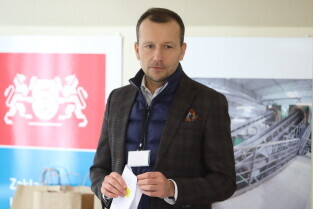 Gdańsk, Zakład Utylizacyjny w Gdańsku. Podsumowanie akcji Planeta Odzysku dla szkół oraz Aktywne Sąsiedztwo i wręczenie czeków dla zwycięskich szkół. Nz. Michał Dzioba-Prezes Zarządu Zakład Utylizacyjny Sp. z o.o.