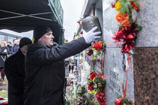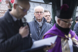 Gdańsk. Pogrzeb Longina Mażewskiego, który w latach 1994-1998 był wiceprezydentem Gdańska i odpowiadał we władzach miasta za politykę finansową. Nz. Tomasz Posadzki, w latach 1994–1998 prezydent Gdańska