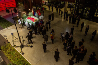 Gdańsk. Trumna z ciałem zamordowanego Prezydenta Pawła Adamowicza została wystawiona w Europejskim Centrum Solidarności. Przez cały dzień tysiące ludzi czekało w ogromnej kolejce by oddać cześć zmarłemu prezydentowi
