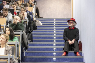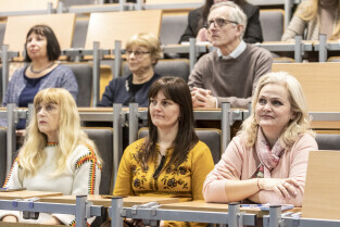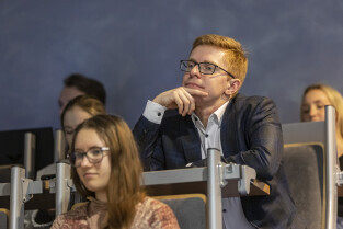 Gdańsk. Na Wydziale Nauk Społecznych Uniwersytetu Gdańskiego odbyła się debata pt. Polsko-ukraińskie relacje po 24 lutego 2024. Nz. Debacie przysłuchuje się radny miasta Andrzej Stelmasiewicz