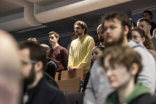 Gdańsk. Na Wydziale Nauk Społecznych Uniwersytetu Gdańskiego odbyła się debata pt. Polsko-ukraińskie relacje po 24 lutego 2024. Nz. radny miasta z ramienia PiS Andrzej Skiba