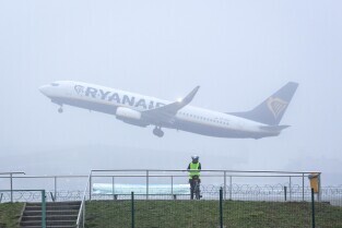 Gdańsk. Gęsta mgła zawisła nad Portem Lotniczym im. Lecha Wałęsy w Rębiechowie powodując opóźnienia w lotach samolotów.