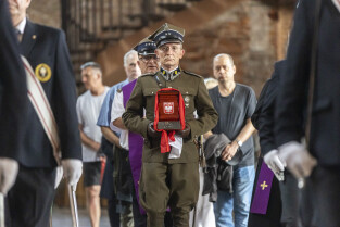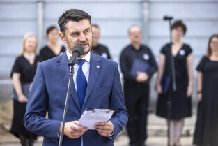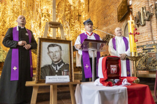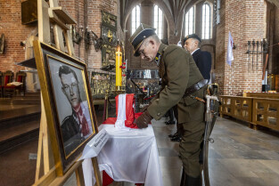 Gdańsk. Uroczystości upamiętniające płk. Wincentego Sobocińskiego przed wyjazdem urny z jego prochami z Gdańska do Murzynna ( obecnie na terenie woj. kujawsko-pomorskiego) gdzie mają zostać złożone w rodzinnym grobowcu. W uroczystościach udział wzięli między innymi Lech Parell, Szef Urzędu do Spraw Kombatantów i Osób Represjonowanych oraz Piotr Borawski, Z-ca Prezydenta ds. mobilności i bezpieczeństwa.