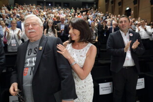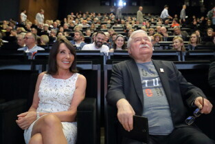 Premiera filmy My Naród. Gdańsk, Europejskie Centrum Solidarności. Nz. reżyserka filmu Ewa Ewart i Lech Wałęsa