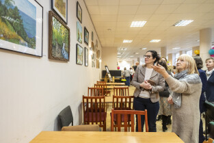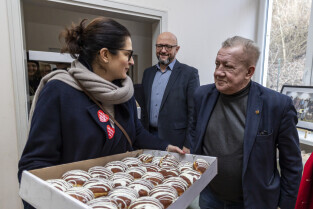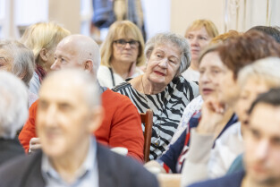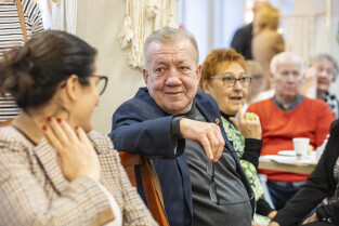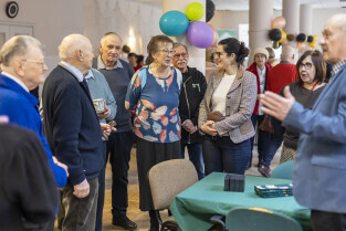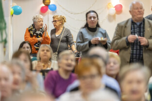 Gdańsk. Prezydent Aleksandra Dulkiewicz odwiedziła seniorów w Domu Sąsiedzkim Zakopianka prowadzonym przez Fundację RC. Nz. Radny Piotr Dzik