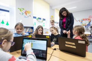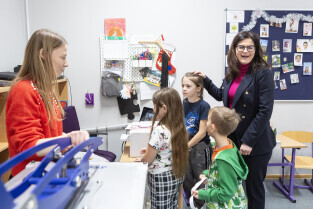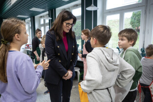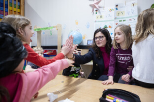 Gdańsk. Prezydent Aleksandra Dulkiewicz odwiedziła uczestników połkolonii organizowanych przez Szkołę Podstawową nr 27.