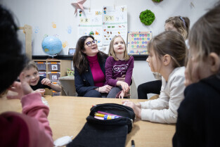 Gdańsk. Prezydent Aleksandra Dulkiewicz odwiedziła uczestników połkolonii organizowanych przez Szkołę Podstawową nr 27. Nz. Kierowniczka półkolonii Paulina Malinowska