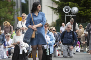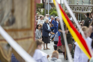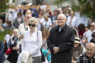 Gdańsk. Procesja Bożego Ciała zorganizowana przez parafię Zmartwychwstania Pańskiego przeszła ulicami dzielnicy Strzyża. Nz. Tadeusz Fiszbach, w latach 1975–1982 I sekretarz KW Polskiej Zjednoczonej Partii Robotniczej w Gdańsku