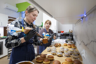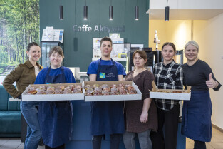 W Tłusty Czwartek, już od północy, w kuchni kawiarni Caffe Aktywni na Siedlcach trwa produkcja ogromnej ilości pączków. W produkcji tradycyjnych słodkości pomagają osoby z niepełnosprawnościami intelektualnymi.