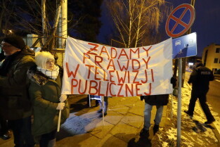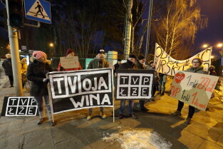 Gdańsk. Protest pod siedzibą TVP Gdańsk.