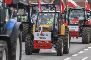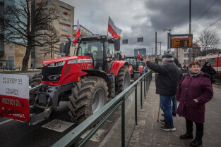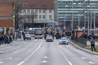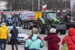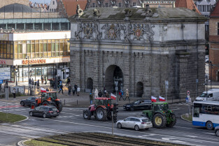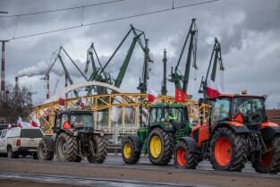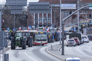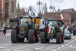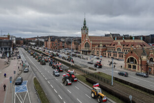 Gdańsk. W ramach ogólnopolskiej akcji rolników domagających się wstrzymania importu produktów rolnych z Ukrainy, ponad 100 ciągników zablokowało na kilka godzin główne ulice miasta.