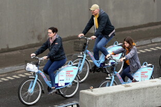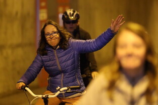 Gdańsk. Przejazd rowerowy przez tunel pod Martwą Wisłą z okazji jego trzecich urodzin, a także 15. rocznicy wejścia Polski do Unii Europejskiej. Nz. Radna Kamila Błaszczyk.