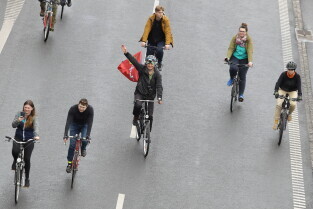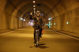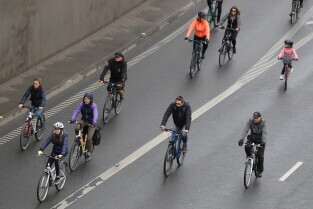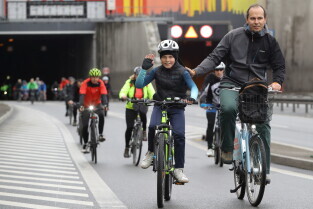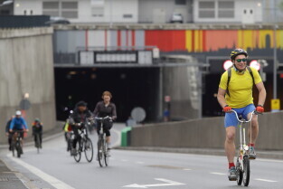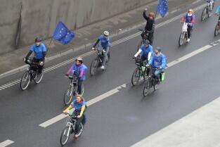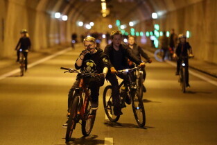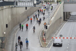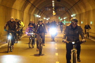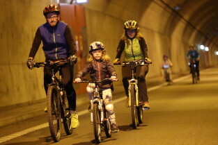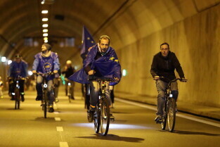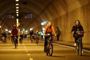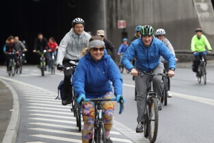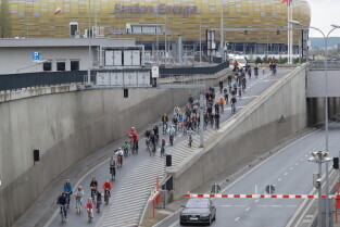 Gdańsk. Przejazd rowerowy przez tunel pod Martwą Wisłą z okazji jego trzecich urodzin, a także 15. rocznicy wejścia Polski do Unii Europejskiej.