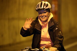 Gdańsk. Przejazd rowerowy przez tunel pod Martwą Wisłą z okazji jego trzecich urodzin, a także 15. rocznicy wejścia Polski do Unii Europejskiej. Nz. Radna Katarzyna Czerniewska.