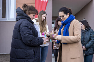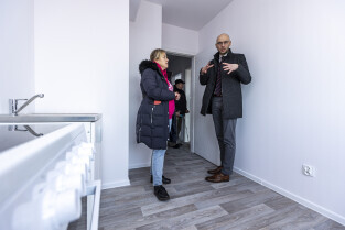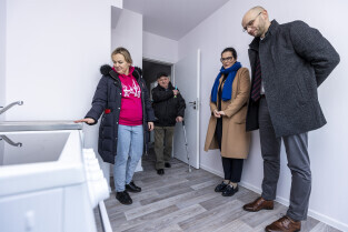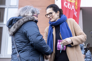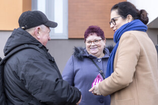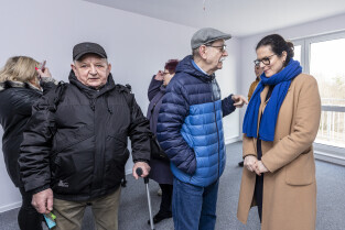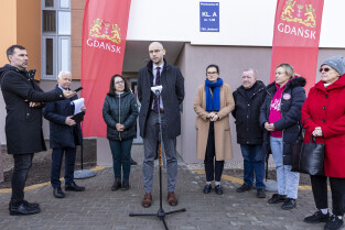 Prezydent Aleksandra Dulkiewicz wraz ze swoim zastępcą Piotrem Kryszewskim oraz radnymi miasta Teresą Wasilewską, Kamilą Błaszczyk, Katarzyną Czerniewską i Piotrem Dzikiem przekazali klucze do mieszkań w bloku na osiedlu TBS Motława przy ulicy Piotrkowskiej.