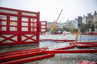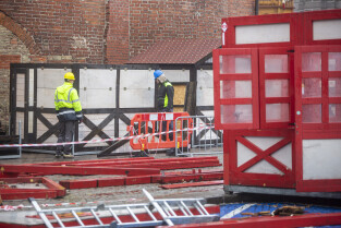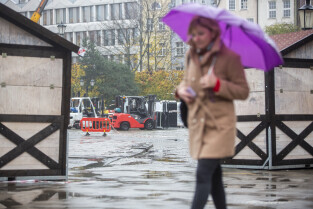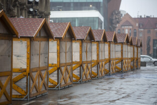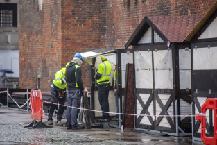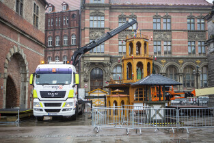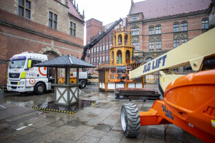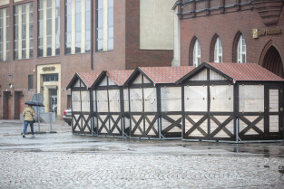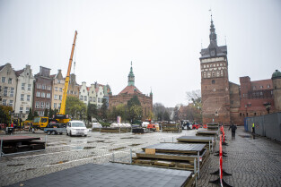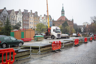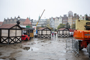 Gdańsk. Na Targu Węglowym oraz w jego sąsiedztwie rozpoczęły się przygotowania do zbliżającego się Jarmarku Bożonarodzeniowego.