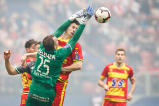 Warszawa. Puchar Polski 2018/2019, mecz finałowy Jagiellonia Białystok - Lechia Gdańsk. Nz. Marian Kelemen i Ivan Runje