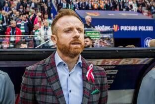 Warszawa. Puchar Polski 2018/2019, mecz finałowy Jagiellonia Białystok - Lechia Gdańsk. Nz. trener Lechii Piotr Stokowiec