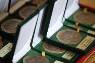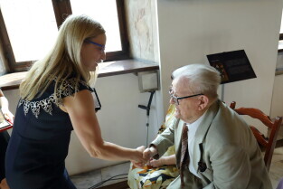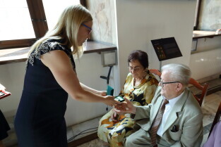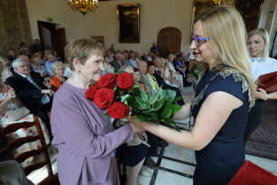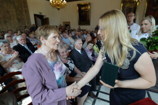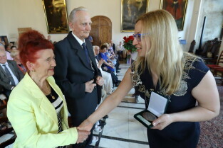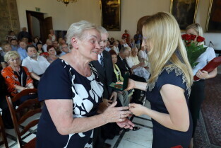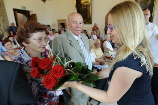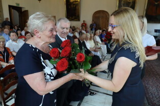 Gdańsk. Ratusz Głównego Miasta. Jubileusz Par Małżeńskich - "Złote Gody", podczas których Przewodnicząca Rady Miasta Gdańska Agnieszka Owczarczak wręczyła medale za długoletnie pożycie małżeńskie.