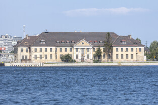 Gdańsk. Rejs po gdańskim porcie na pokładzie żaglowca J.R.Tolkien. Nz. Budynek po Poczcie Morskiej