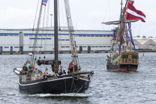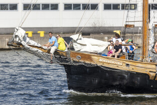 Gdańsk. Rejs po gdańskim porcie na pokładzie żaglowca J.R.Tolkien. Nz. Żaglowiec Brabander
