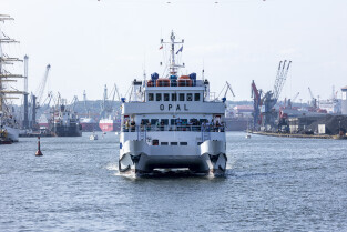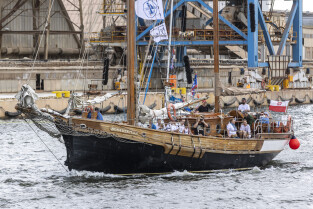 Gdańsk. Rejs po gdańskim porcie na pokładzie żaglowca J.R.Tolkien. Nz. statek Opal