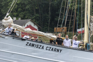 Gdańsk. Rejs po gdańskim porcie na pokładzie żaglowca J.R.Tolkien. Nz. Żaglowiec Zawisza Czarny
