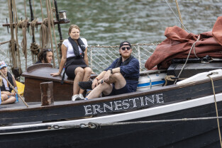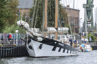 Gdańsk. Rejs po gdańskim porcie na pokładzie żaglowca J.R.Tolkien. Nz. Żaglowiec Ernestine