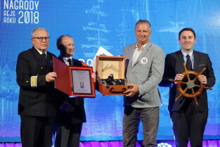 Gdańsk. Rejs Roku 2018. Srebrne Sekstanty dla Szymona Kuczyńskiego i Mariusza Kopera.