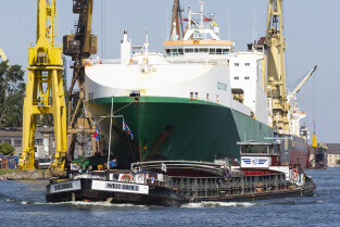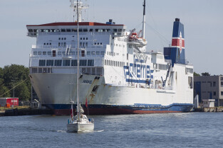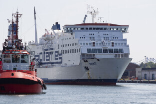 Gdańsk. Długie Pobrzeże, Żuraw, Stocznia Gdańska czy port to tylko niekóre atrakcje jakie można zobaczyć z pokładu statku wycieczkowego Smiltyne Żeglugi Gdańskiej. Nz. Prom Polferries Wawel