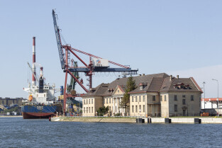 Gdańsk. Długie Pobrzeże, Żuraw, Stocznia Gdańska czy port to tylko niekóre atrakcje jakie można zobaczyć z pokładu statku wycieczkowego Smiltyne Żeglugi Gdańskiej. Nz. Zabytkowy gmach Poczty Polskiej na terenie gdańskiego portu.