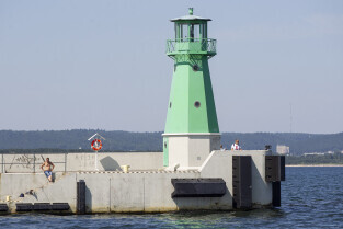Gdańsk. Długie Pobrzeże, Żuraw, Stocznia Gdańska czy port to tylko niekóre atrakcje jakie można zobaczyć z pokładu statku wycieczkowego Smiltyne Żeglugi Gdańskiej. Nz. Latarnia na główkach portu w gdańsku