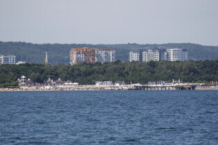 Gdańsk. Długie Pobrzeże, Żuraw, Stocznia Gdańska czy port to tylko niekóre atrakcje jakie można zobaczyć z pokładu statku wycieczkowego Smiltyne Żeglugi Gdańskiej. Nz. Molo w Brzeźnie. W tle widoczne bloki w dzielnicy Przymorze.