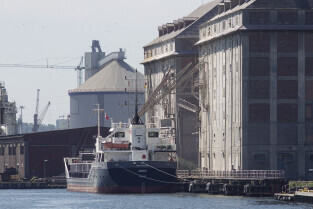 Gdańsk. Długie Pobrzeże, Żuraw, Stocznia Gdańska czy port to tylko niekóre atrakcje jakie można zobaczyć z pokładu statku wycieczkowego Smiltyne Żeglugi Gdańskiej. Nz. Zabytkowe Silosy Zbożowe w Nowym Porcie.