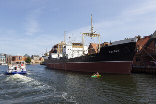 Gdańsk. Długie Pobrzeże, Żuraw, Stocznia Gdańska czy port to tylko niektóre atrakcje jakie można zobaczyć z pokładu statku wycieczkowego Smiltyne Żeglugi Gdańskiej.