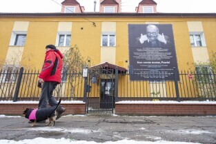 Gdańsk. W dzielnicy Strzyża, na bloku, w którym mieszkał z rodzicami Paweł Huelle zawisł baner upamiętniający zmarłego pisarza.