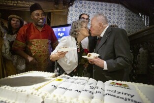 Gdańsk. Uroszysty Jubileusz prof. Andrzeja Januszajtisa z okazji jego 95. urodzin odbył się w Ratuszu Staromiejskim z udziałem między innymi Prezydent Aleksandry Dulkiewicz