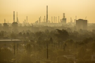 Gdańsk. Sylwetka gdańskiej Rafinerii sfotografowana w porannej mgle