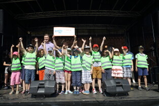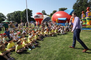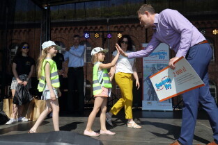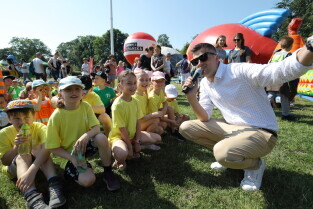 Gdańsk, Hevelianum. Piknik kończący Rowerowy Maj. Nz. Wiceprezydent Gdańska Piotr Grzelak.
